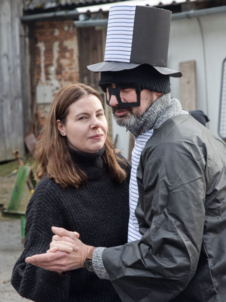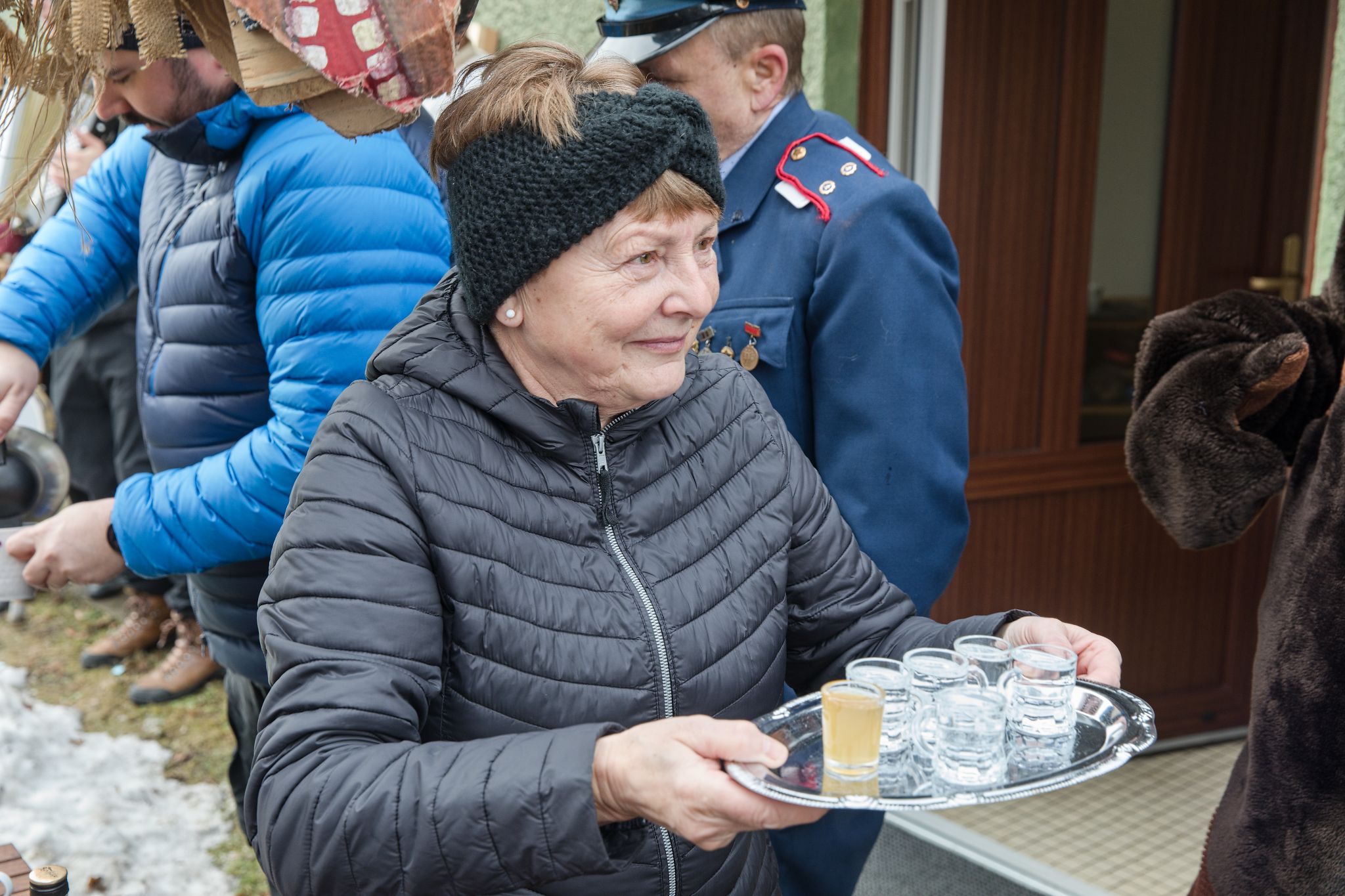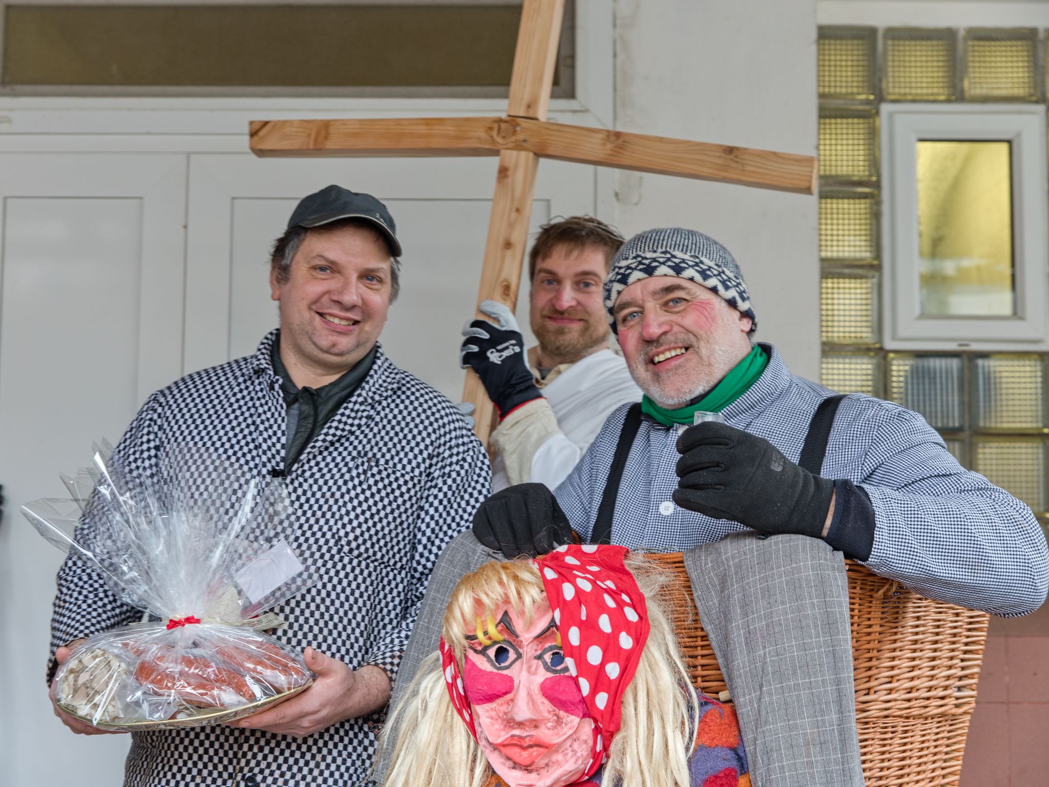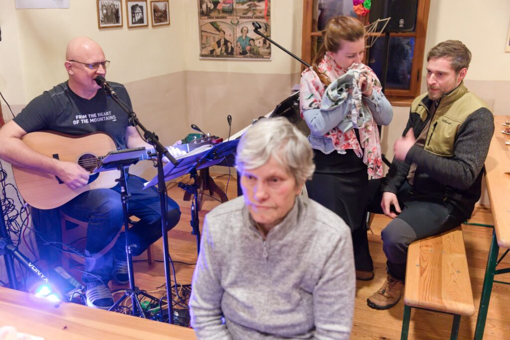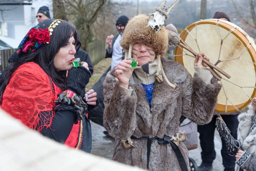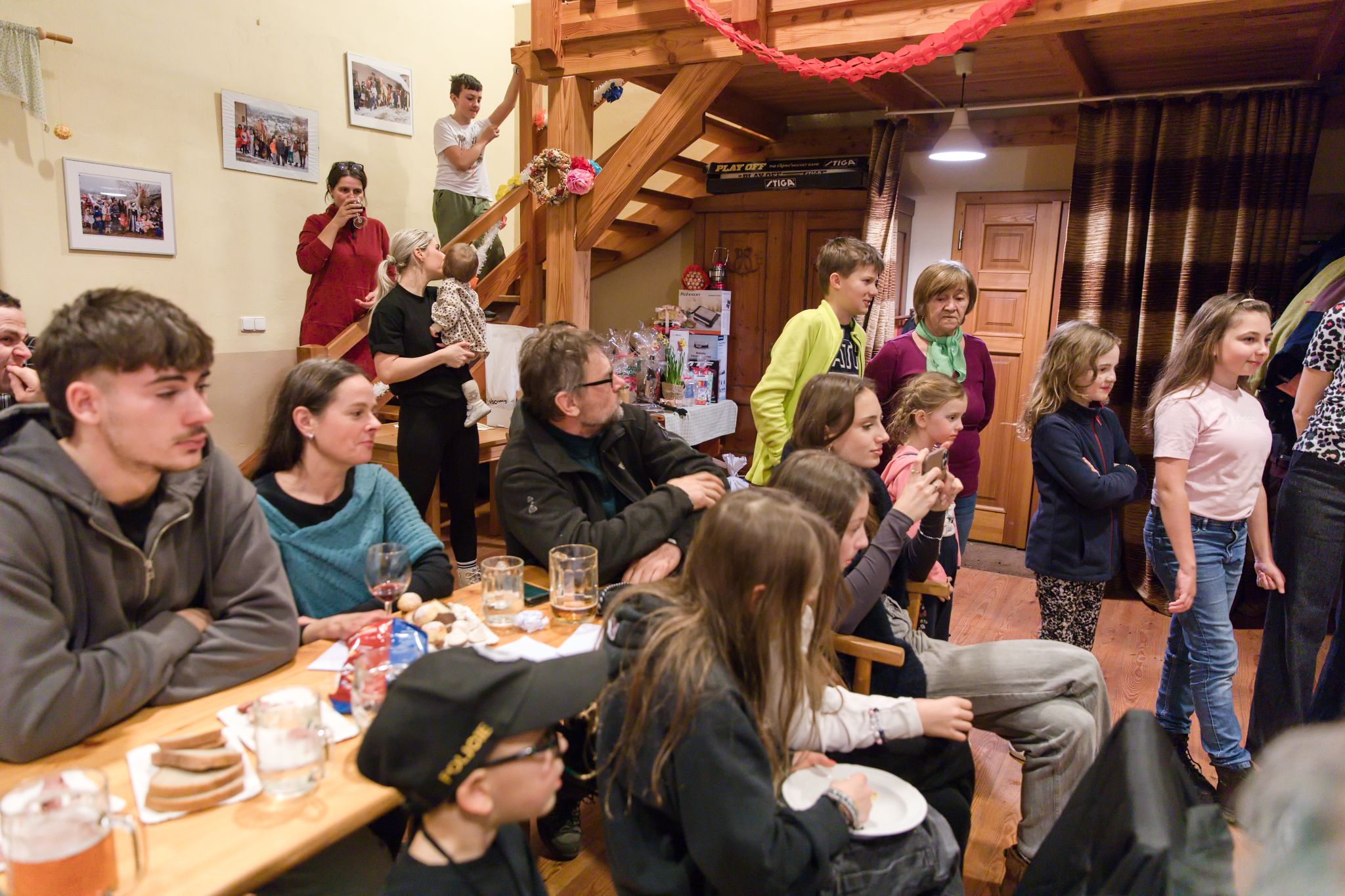 Sousedé a sousedky na oplátku pro masopustní maškary nachystali bohaté občerstvení a něco přidali na vůz k večernímu pohoštění ve Spolkovně. Tam jsme se všichni sešli po krátkém odpočinku.