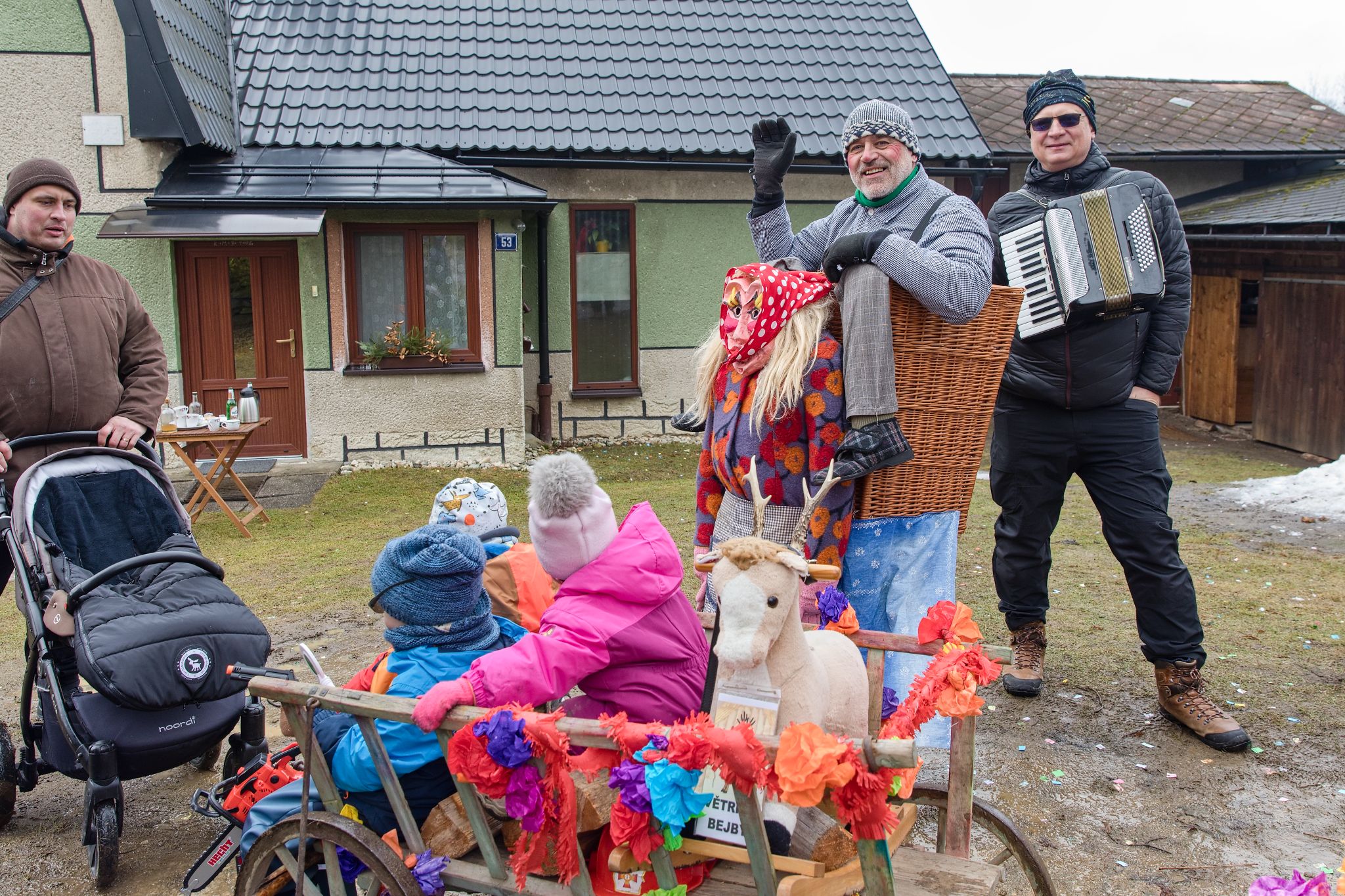 Celý masopustní den i večer jsme si krásně užili. Zima je letos jaksi delší, než byla v posledních letech. Tak bylo příjemné se se sousedy setkat, popovídat si a užít si trochu legrace. Těšíme se na další setkání v průběhu letošního roku!