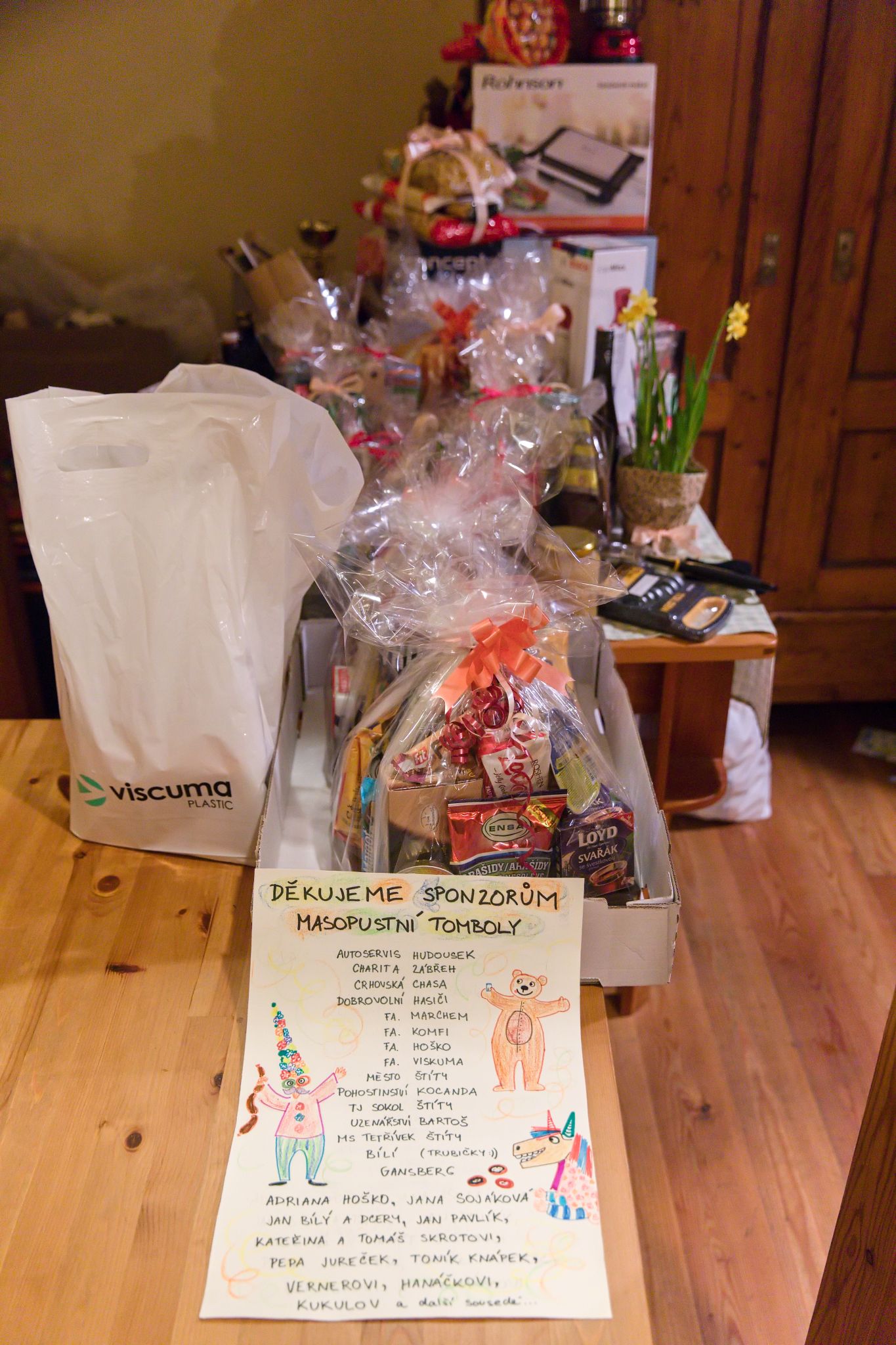 Posledním bodem programu byla již tradiční masopustní tombola. Ceny do ní věnovaly firmy, organizace, spolky, ale i spousta crhovských sousedů. Děkujeme všem za krásné ceny! Jména konkrétních sponzorů najdete na jedné z fotografií v galerii níže.