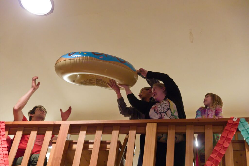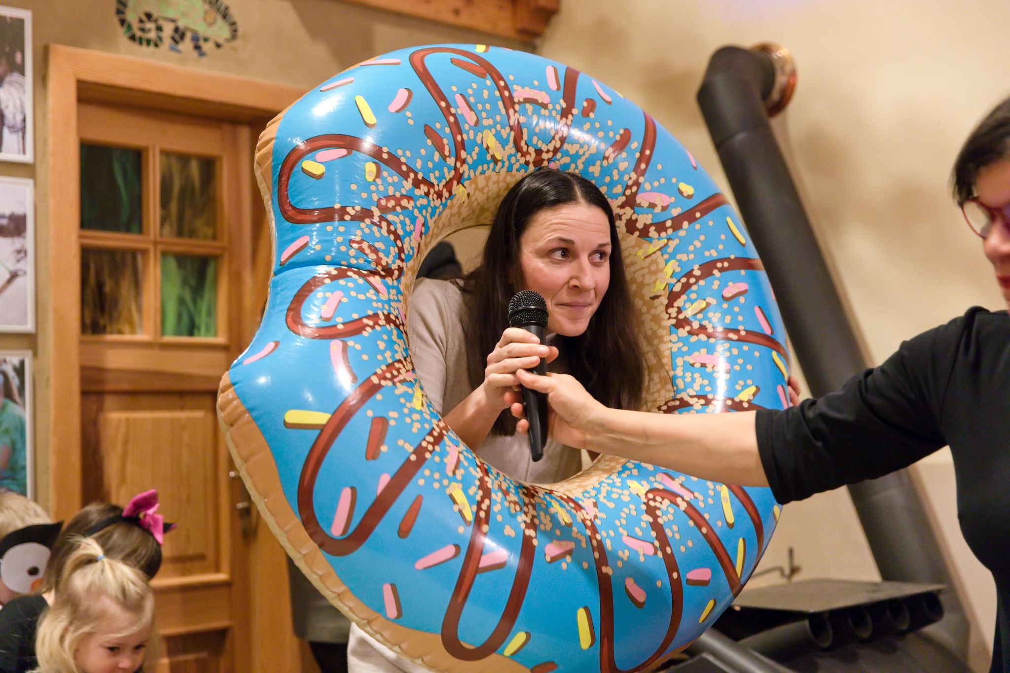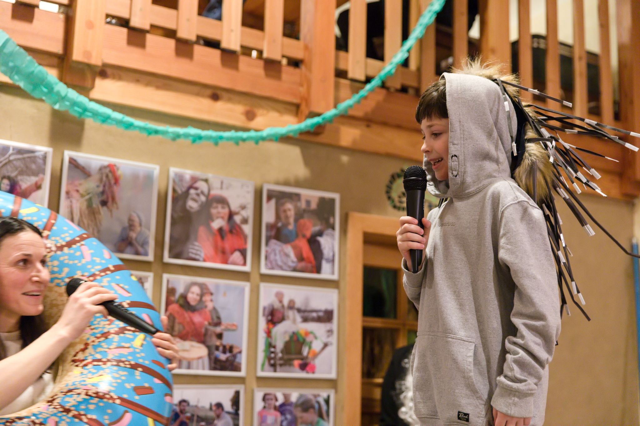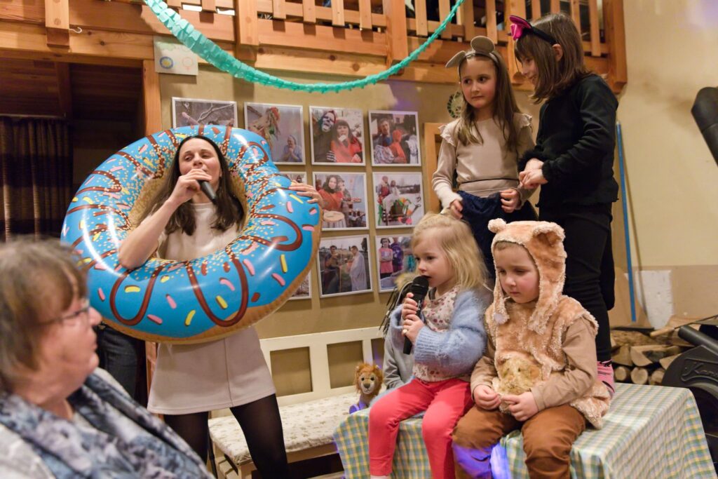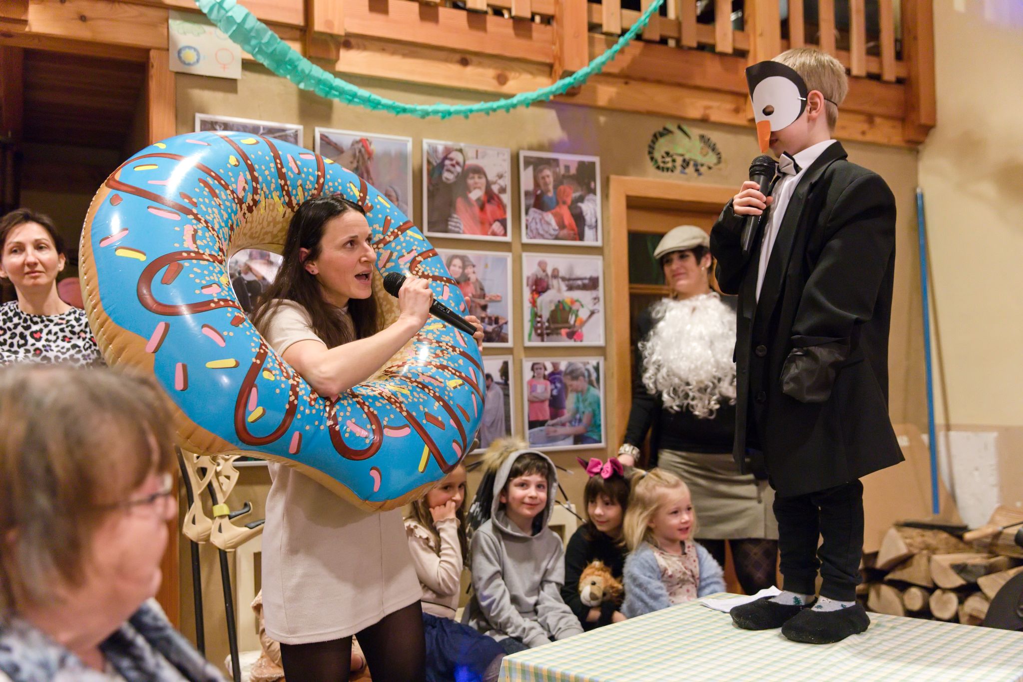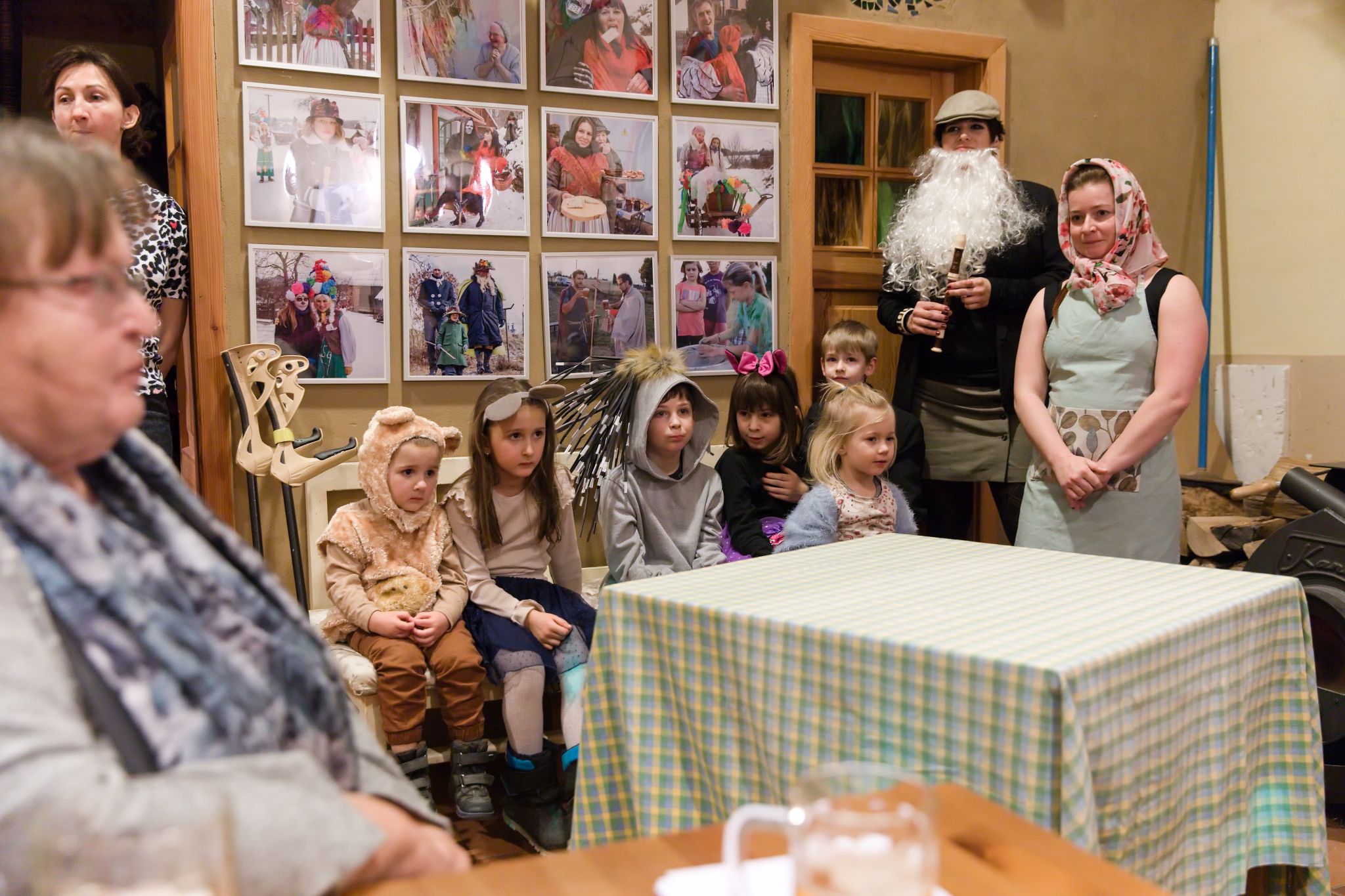 Jako první bod večerního programu zahrály crhovské děti pohádku O Koblížkovi. Koblížek cestoval od jednoho souseda ke druhému po celé Spolkovně, zatímco děti hrály zvířátka z různých kontinentů. Tak i lokální pohádka může dosáhnout mezinárodního rozměru. Nakonec Koblížek docestoval a zvířátka ho snědla. Zazvonil zvonec a pohádky byl konec.