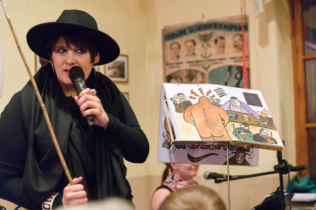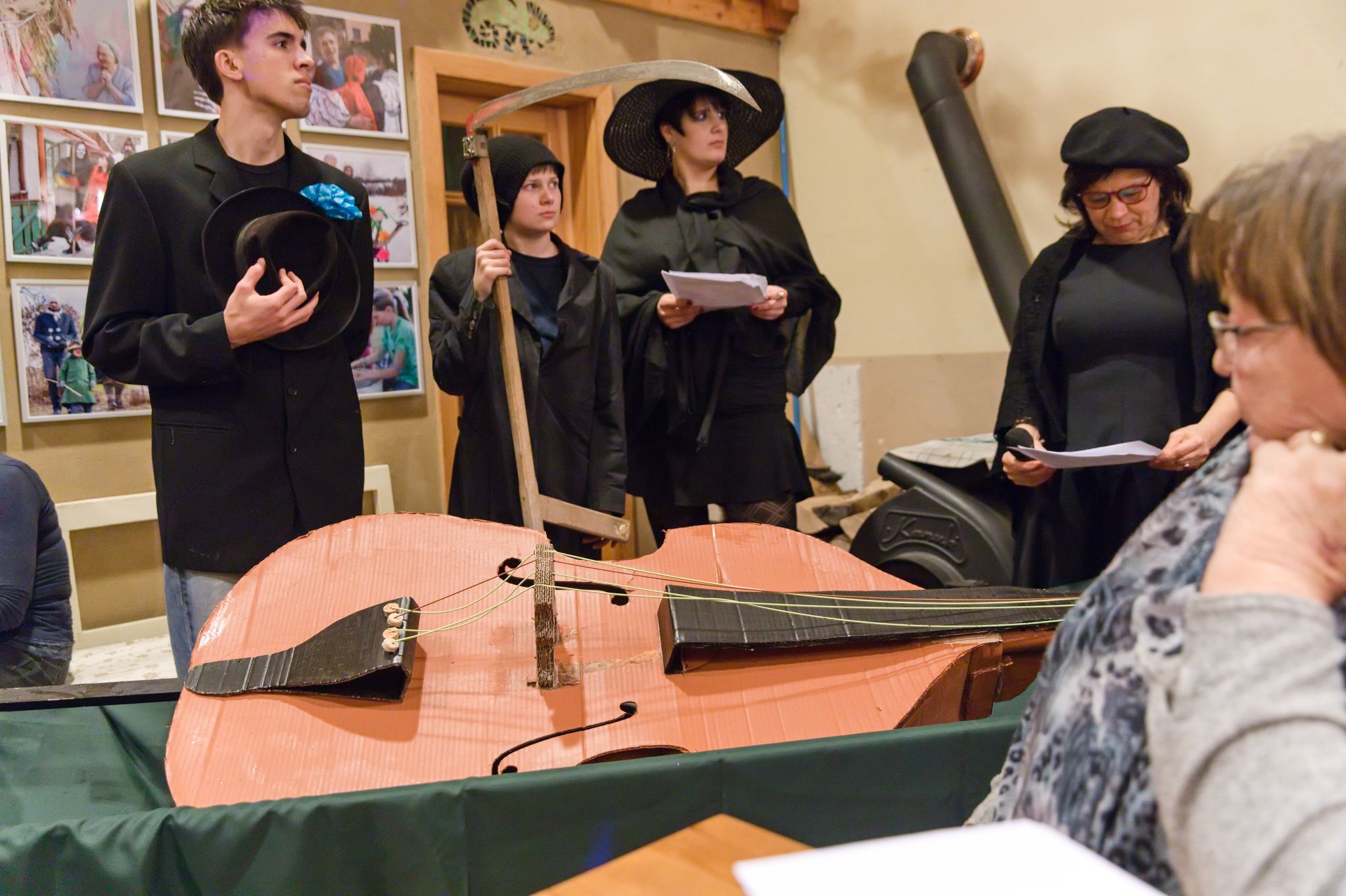 Po občerstvovací přestávce vyplněné hudební produkcí Standy a dua Kláry s Kristýnou následovalo pochovávání basy. Byl to pohřeb veselý a především trochu předčasný, protože zábava pokračovala dále. Kristýna s Klárou po něm zahrály a zazpívaly strašlivou baladu o Golemovi s krásným obrázkovým doprovodem.